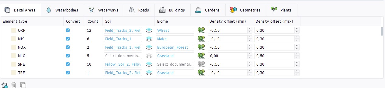 - Biome : One or several Biome document(s) to apply in the decal area of this blueprint category.