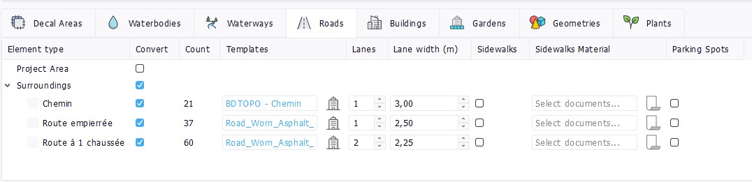 - Templates : One or several Road document(s) to apply as templates on the roads of this blueprint category.