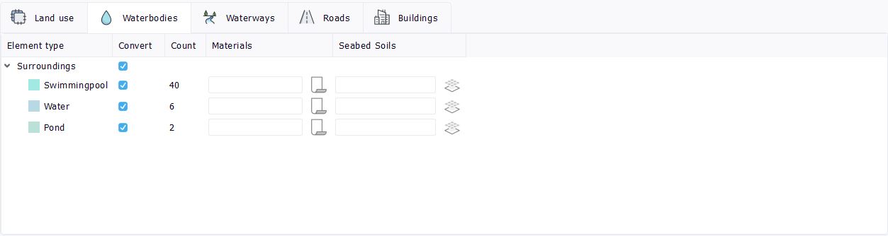- Seabed Soils : One or several Soil document(s) to apply to the seabed of the waterways of this blueprint category.