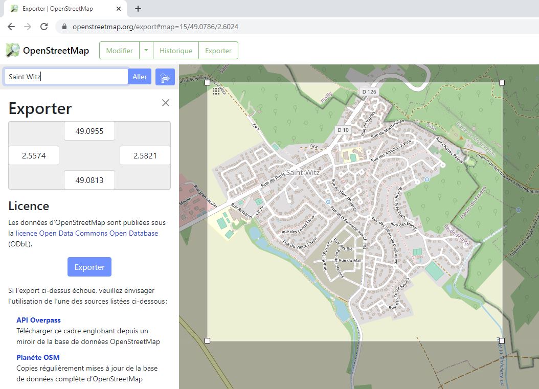 If you don't define an export area, all the objects contained in your OpenStreetMap and QGIS files will appear in your blueprint view, and will be exported in 3D at generation. If your files cover an area that is too big, you can reduce it by using the export area function.
