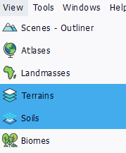 - A "bedrock" layer, called the "Atlas map layer". On a simple terrain it's a flat map with a number of properties that are transmitted to the soil. In a continental design, it's based on the scene atlas contents.