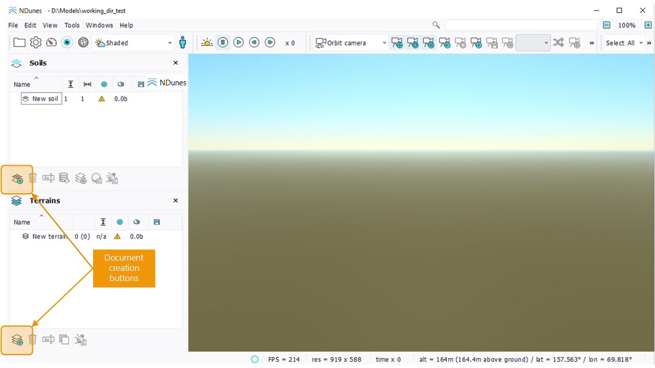 At this point, the terrain is empty and the soil is invalid. This is seen in the validity column of each document. you can see a small orange triangle there. We'll need to fill in the soil and to set something in the terrain before we can see something. Let's start with the soil by double clicking on the document to open it: