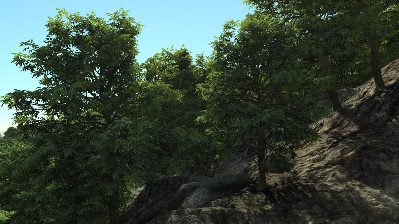 A plant, like any object rendered by NDunes, has a global illumination applied to it to take into consideration the relighting from other scene elements that'll interact with the plant's shading. Unlike what's being done for a geometry (see Adding global illumination), we can't afford to compute global illumination caches for plants as there are millions of instances scattered in scenes and because each plant has subtle variations that make it unique compared to others.