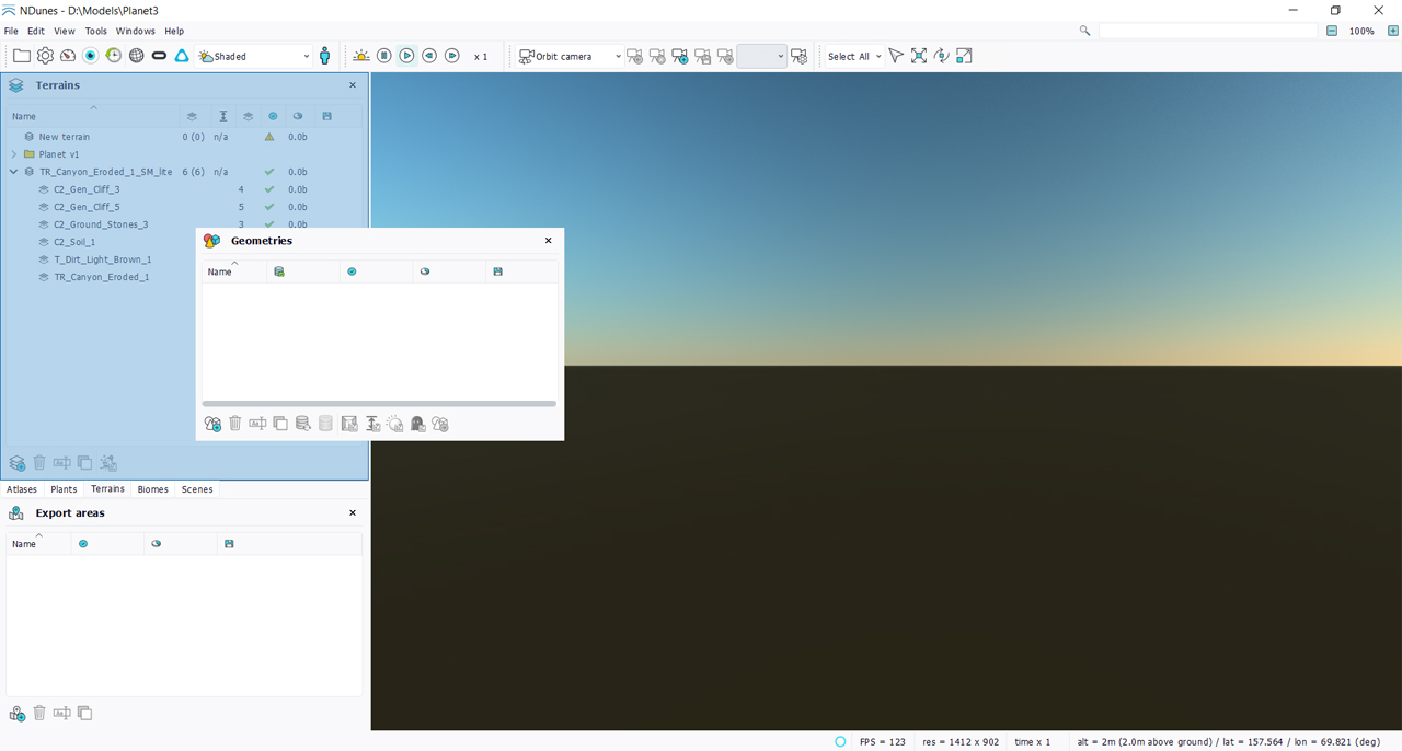 - Soils are full CPU resources. NDunes manages the landscape entirely on the main memory and the GPU only renders the actual landscape mesh (whose cost is not part of the resources cost).