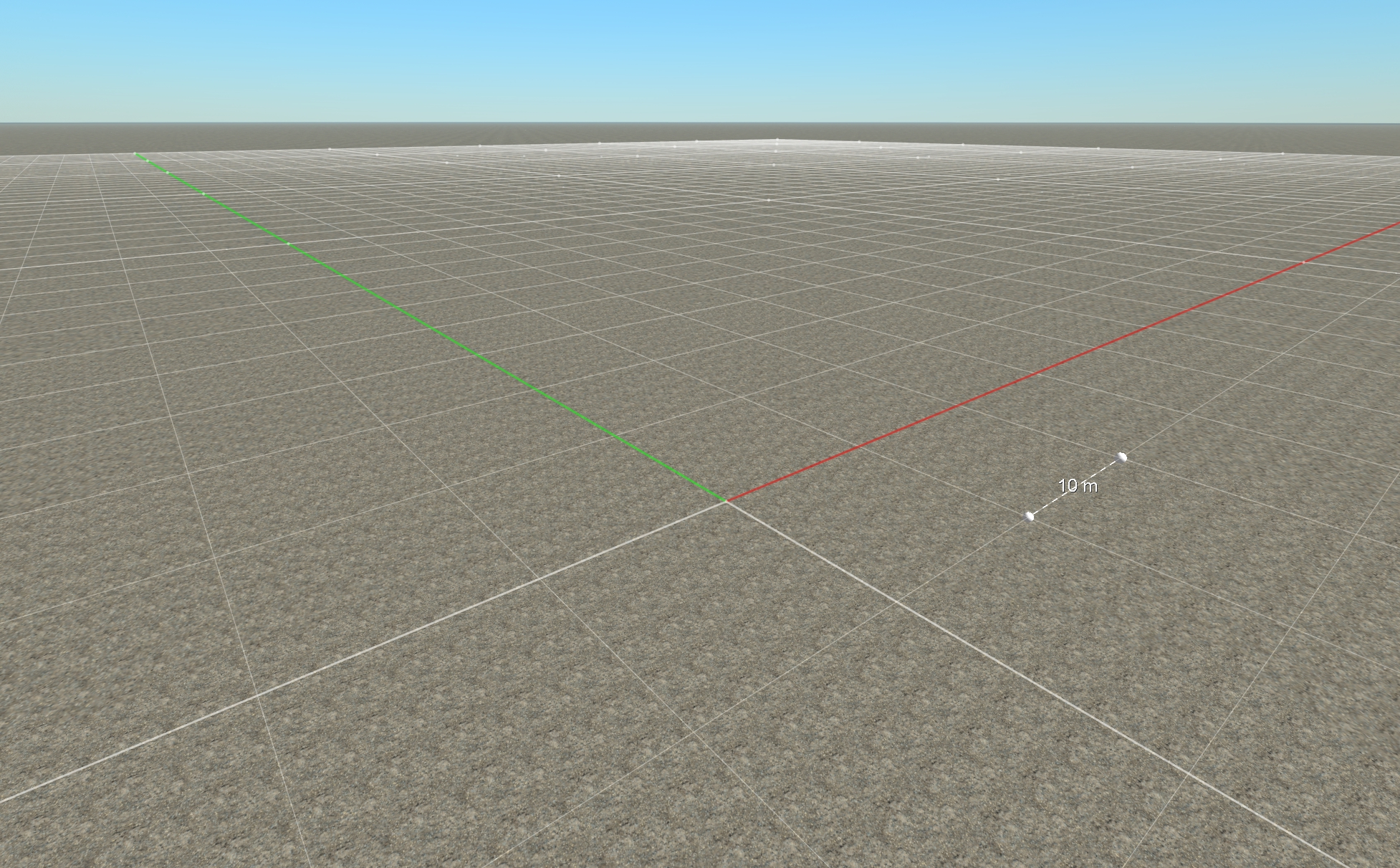 The default grid is a square grid with spacing of 10 meters between 2 small grid lines, against both X and Y axis. It is placed at the center of the scene. A thicker grid line appears every 10 small grid lines for readability purposes.