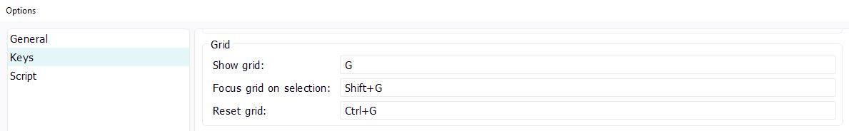 Grid key shortcuts from Options.