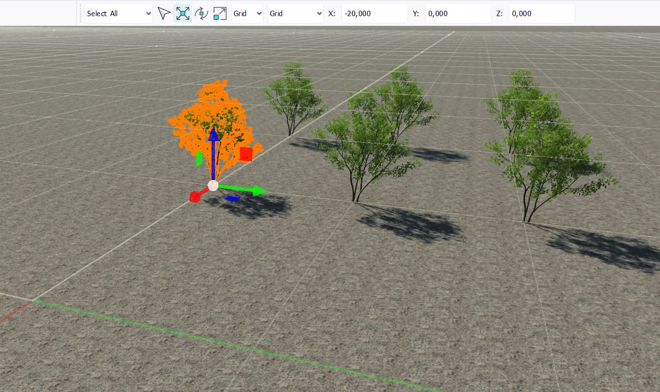 The grid is mostly used to make placement more precise. It must be used with the selection toolbar, please see Using the selection toolbar for more info on snapping, coordinate systemes and gizmos.