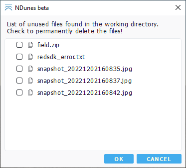 After having processed the content of the directory, a panel will show up listing all the "unused" files with the option to delete them.