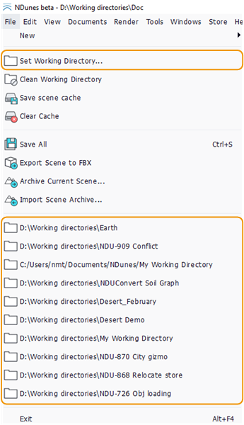 The working directory is the place on your system where NDunes will work, i.e. read and write files. At the first startup of NDunes, a new working directory is automatically created in your Windows Document folder named "NDunes/My Working Directory".