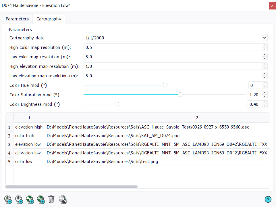 - The low resolution elevation cartography model overrides the earth model (1) where its defined. This model is a full terrain definition with raw land colors / ambient occlusion / flow / reflectance / vegetation densities, reconstructed from the elevation maps.