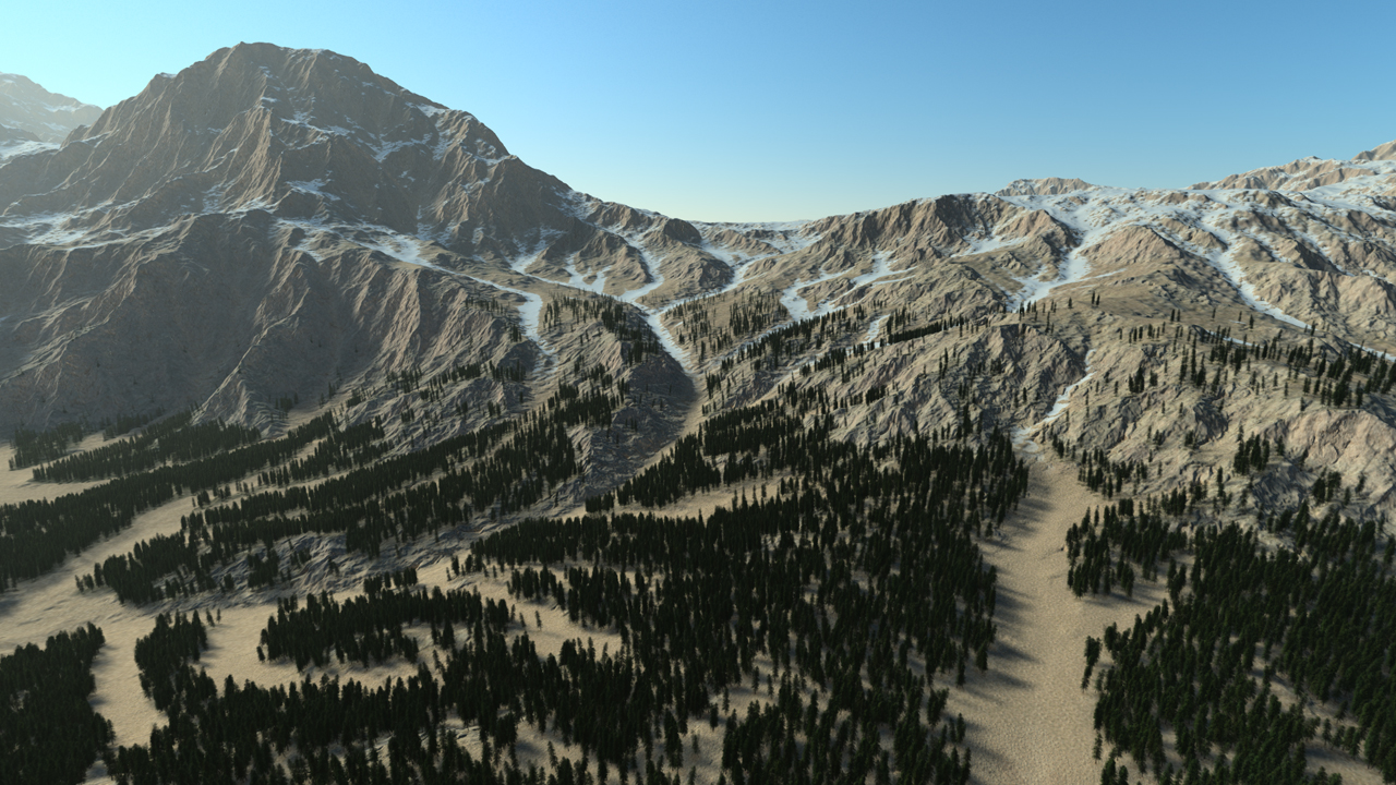 So in the example above, this means that the tree will grow up to 0.5 degree instead of the 1 degree specified. Then, this allows us to use other plants for the snowy part of the terrain, adding snow covered trees for instance.