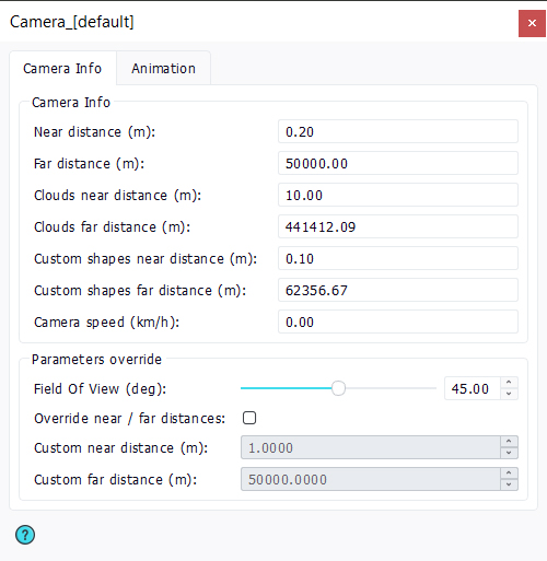 - Custom near and far distances: if the automatically computed near and far distances (seen in the first group) does not suit a specific need, it is possible to override them by these custom values.