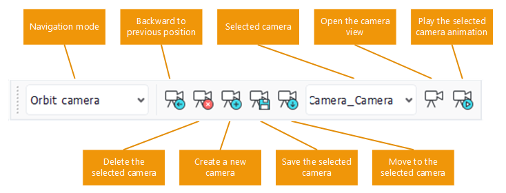 - Set the stored camera position as the current viewpoint (right arrow button in toolbar): this'll change the current view to match the one that was saved earlier