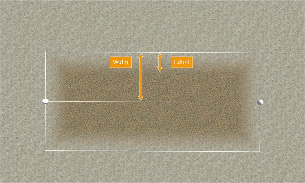 Finally, you can setup your falloff width for all shapes. The falloff width defines a border inside the decal area where all the modifications (soil, plant densities..) will be blended smoothly with what was defined outside of the decal.