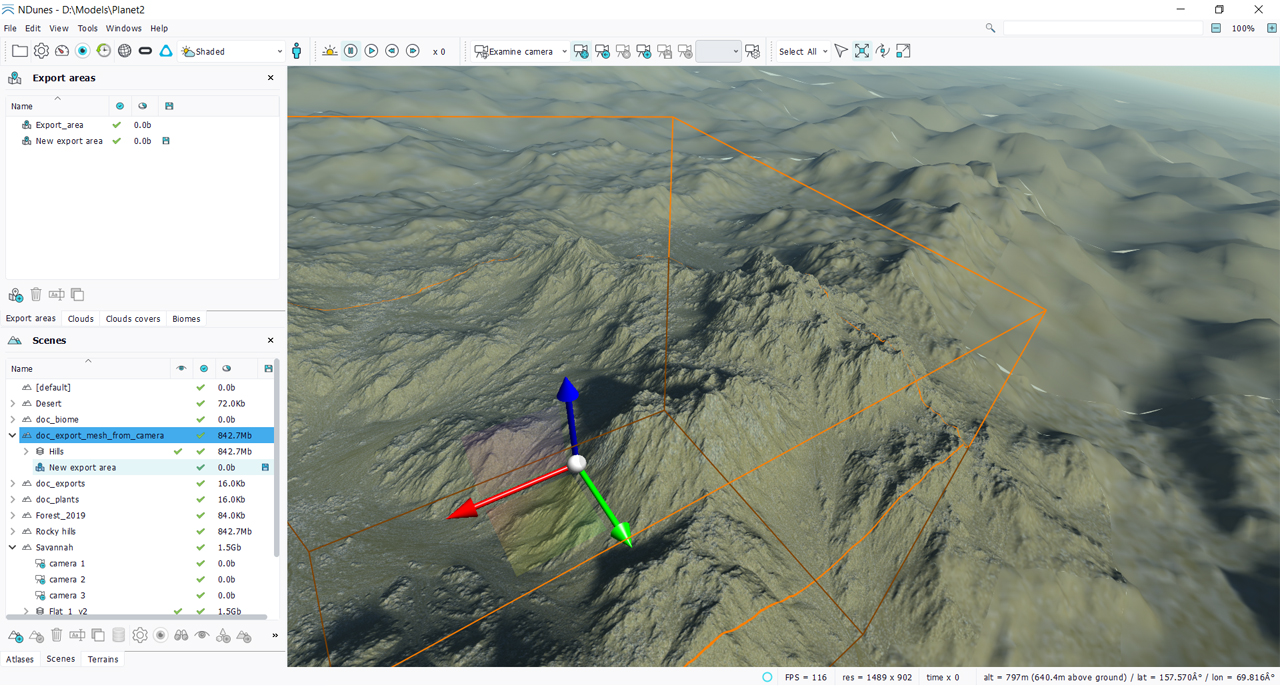 Then, after export, create a geometry in NDunes, answer "no" to the drop origin question and then move the geometry freely using the manipulation gizmos:
