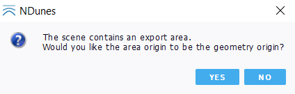 Answering "yes" will ensure that the export area origin, which is the origin of the landscape as exported in the FBX file, will also be used as the geometry origin. That way, a geometry will have its placement synchronized with the source landscape it must fit with. On answering "no", the geometry is "free floating", and its origin (that is defined in the modelling software) will be set on the drop point on the landscape.