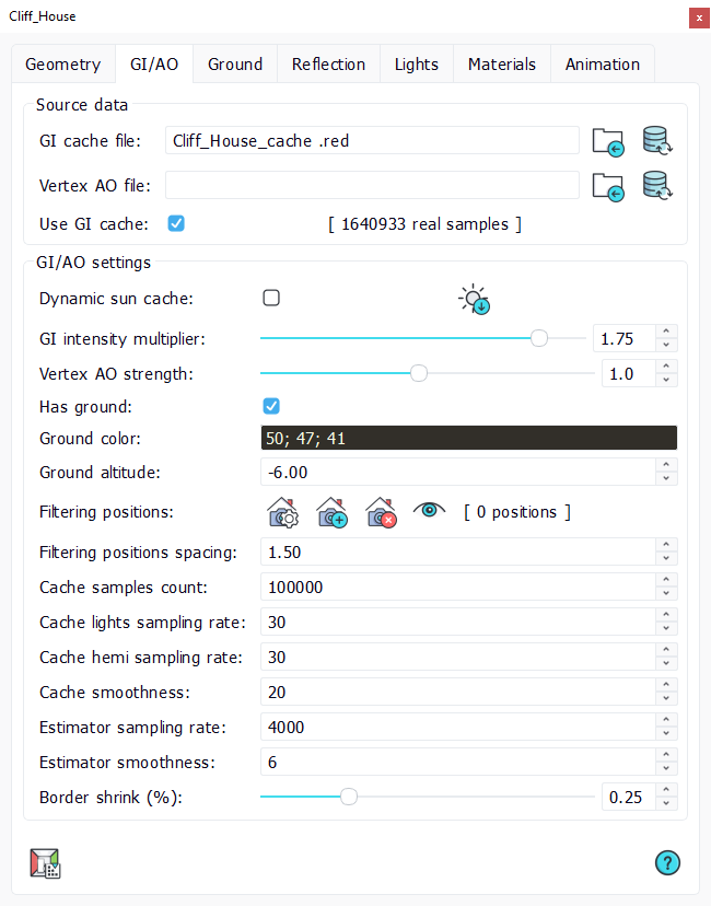The first set of properties shows whether we use the GI/AO cache mode or the vertex GI/AO mode and the associated files locations.