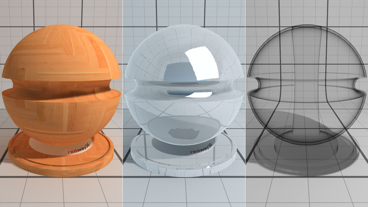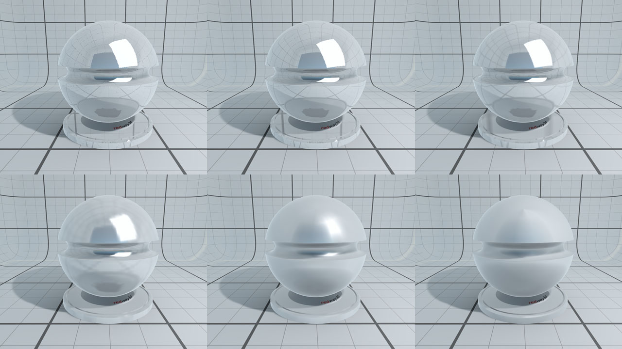 - The transmission defines a true transparency amount, so the resulting opacity of the material can be modified smoothly.