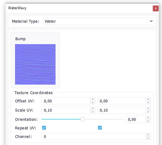 Its single input channel is a normal map to define the rippling effect on your water surface.
