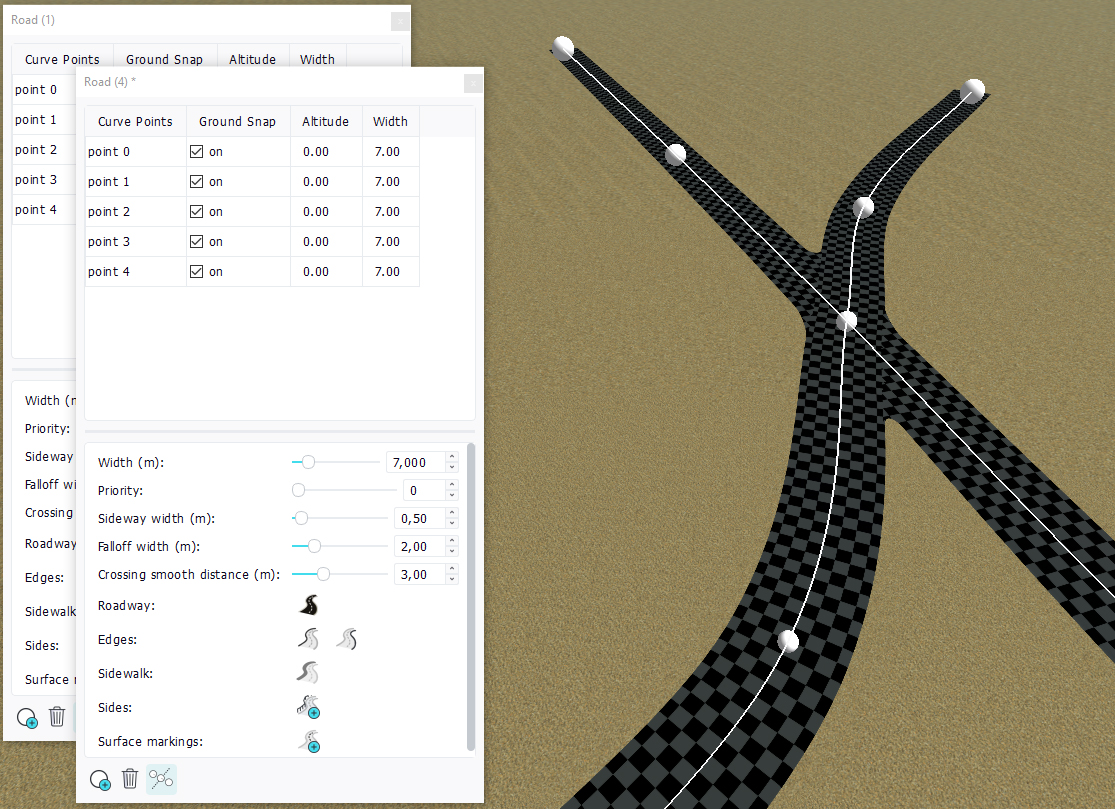 - During the creation of the second road, a point of that road is created onto another existing point. It'll be automatically snapped.