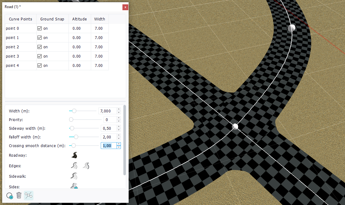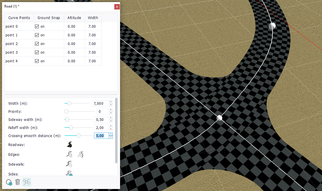 This is done using the 'crossing smooth distance' of the road that define the overall 'radius' of the round smoothing that'll occur at the crossing. This is illustrated below: