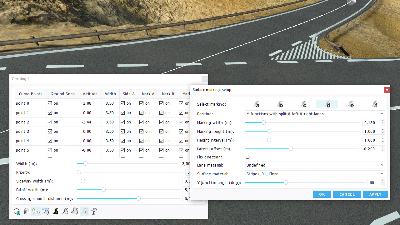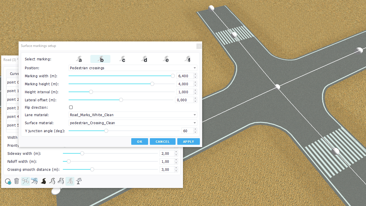 - A surface material for all complex markings such as Y junction markings (used to show striped in the image above).