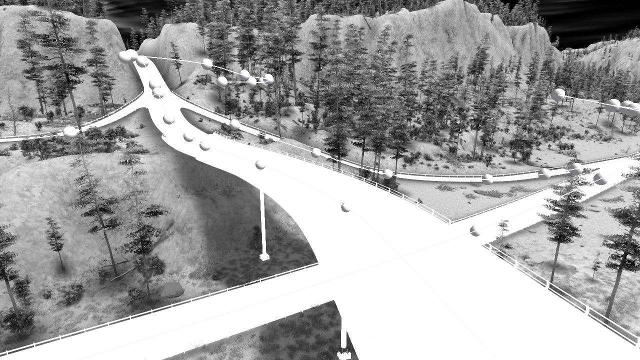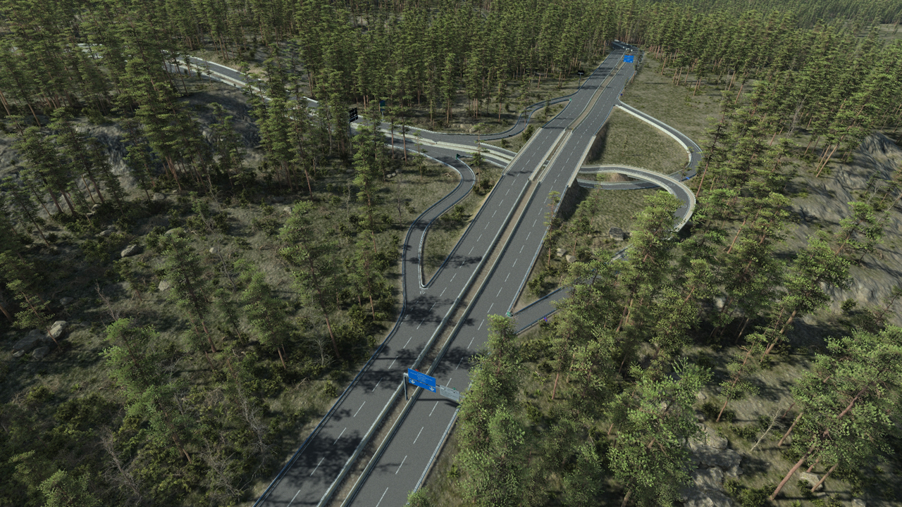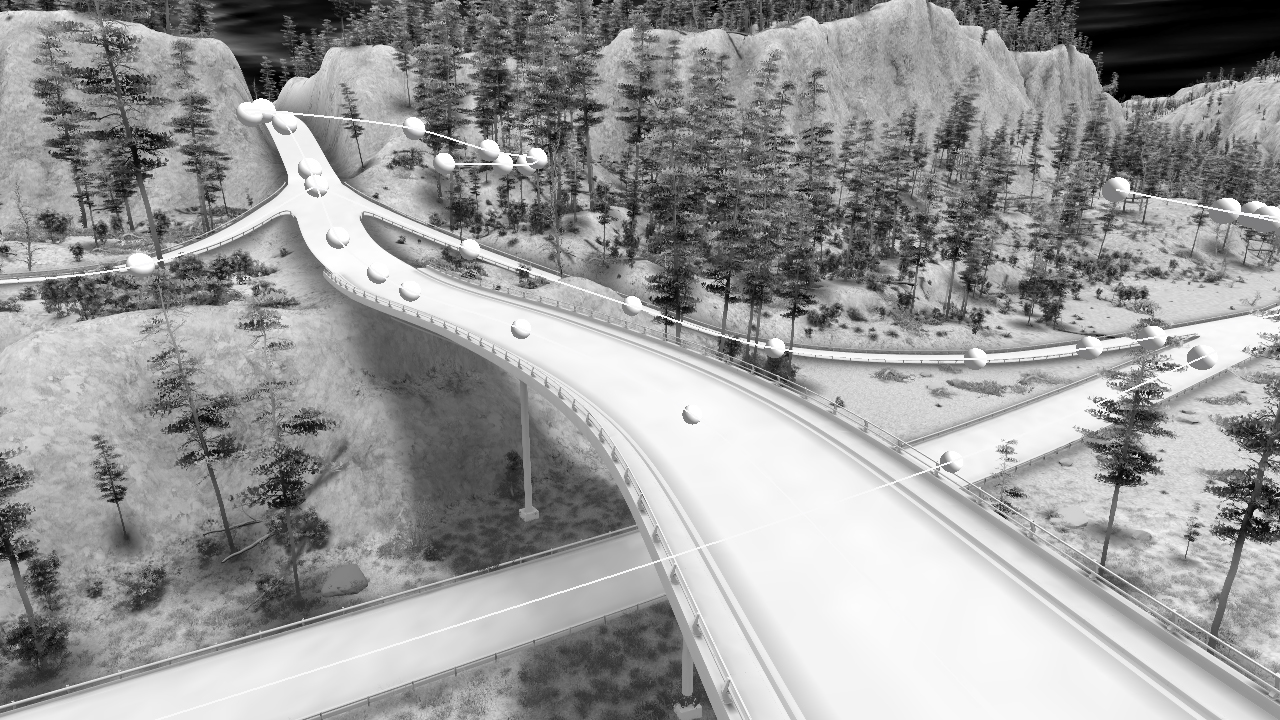 - A network can be calculated in "draft" mode or in "high quality" mode. When in draft mode (the default setup), the network will neither show any geometry model used nor any roadway material. This is shown below: