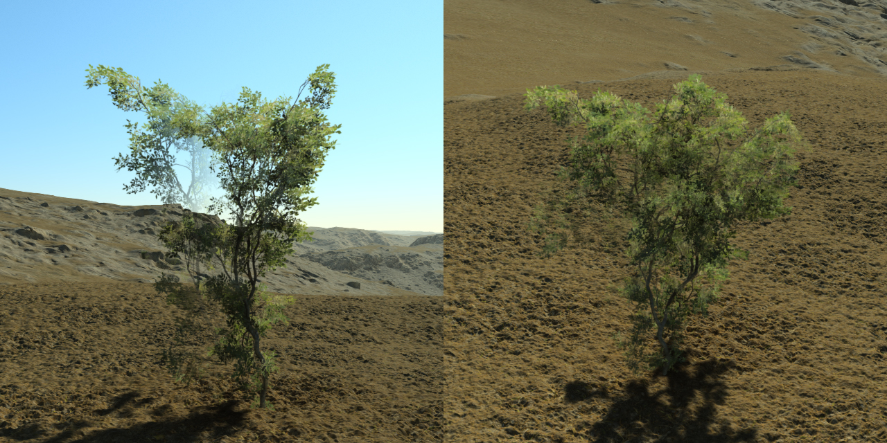 Transitioning from plants meshes to prisms | Plants splats when far away![]() |