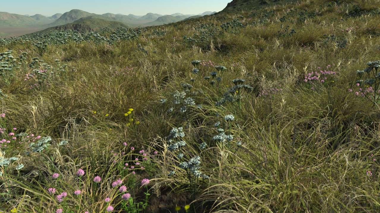 And wait a little bit (1 minute max for large prisms).. A prism is a multi-faceted impostor that replace a real plant mesh in the distance. Note that due to the high quality of these impostors, they may be used even very close to the camera position. For small plants such as grasses, it's very common to only use prisms and not source meshes, relaxing all polygon count constraints that way.