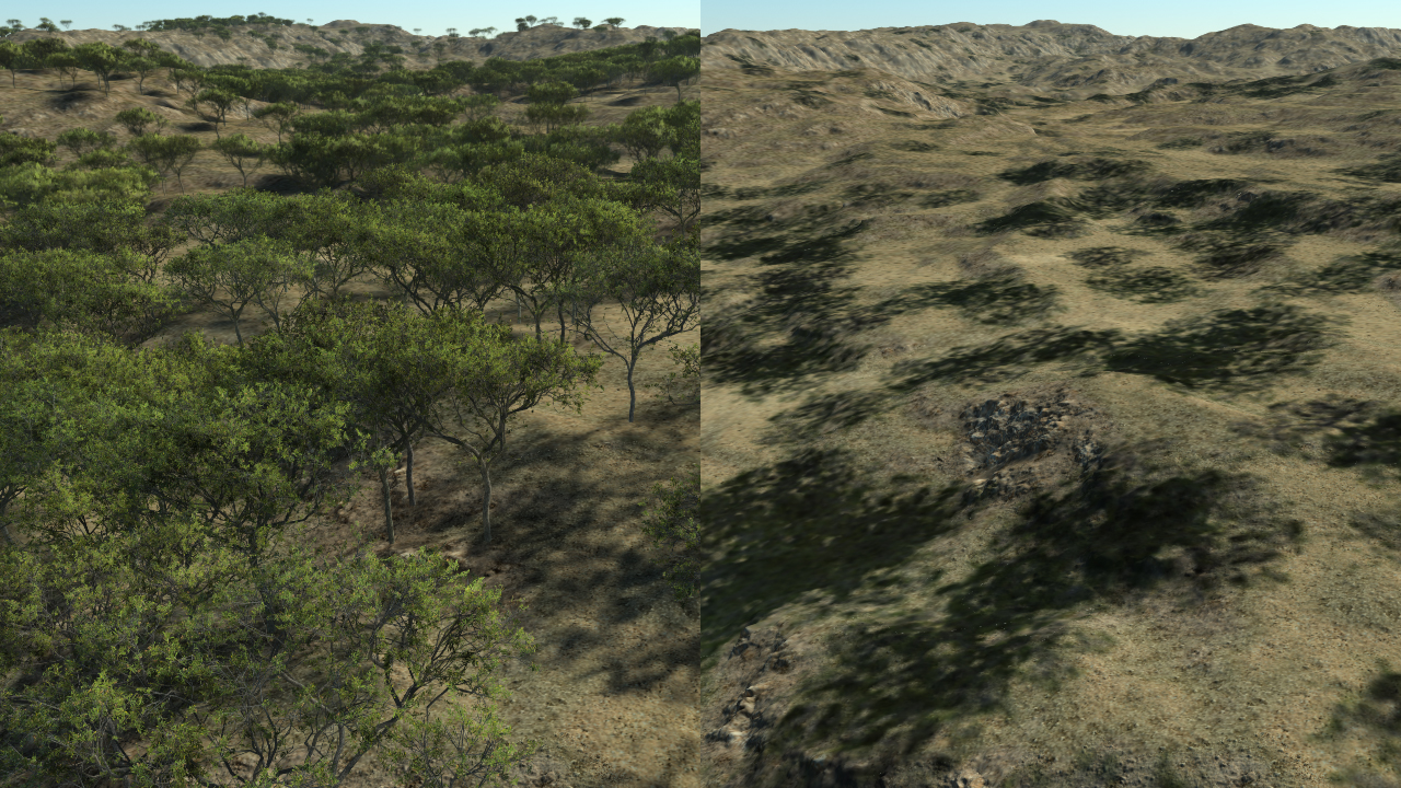 This the 3rd display stage of a plant when we continue to move further away from the observer position. After having seen the mesh of a plant and then its prism, we see its splat. The splat is a painted plant over the ground, as illustrated below: