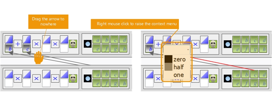 - Select an output by right clicking the link destination icon. Select a value such as 0, 0.5 or 1.0. This'll replace the link.