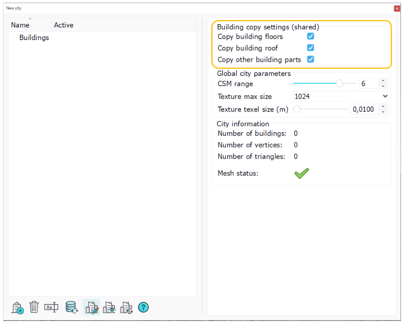 - Copy building floors : if activated this checkbox will copy the facade of all floors of a building. This includes the basement and the eaves.